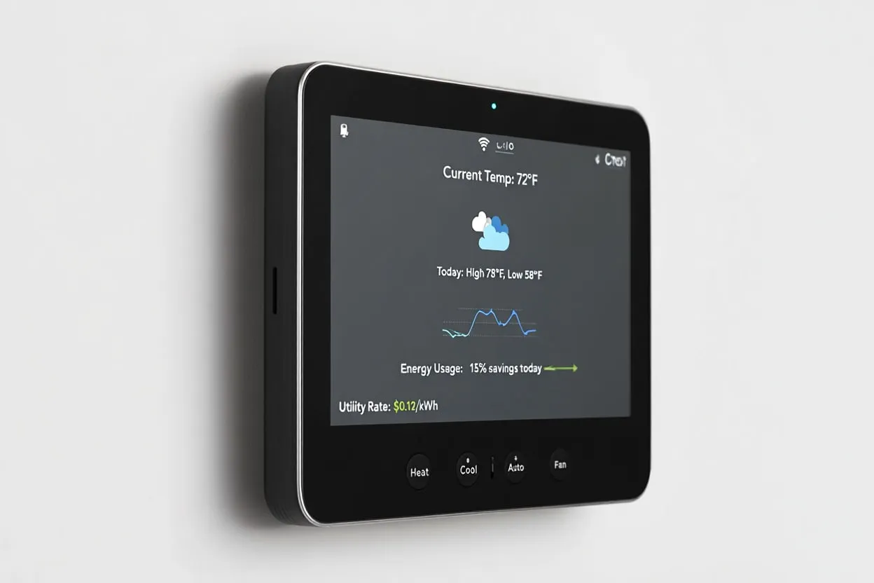 A learning thermostat that integrates with local weather and utility pricing to pre-heat or pre-cool the home during off-peak hours.